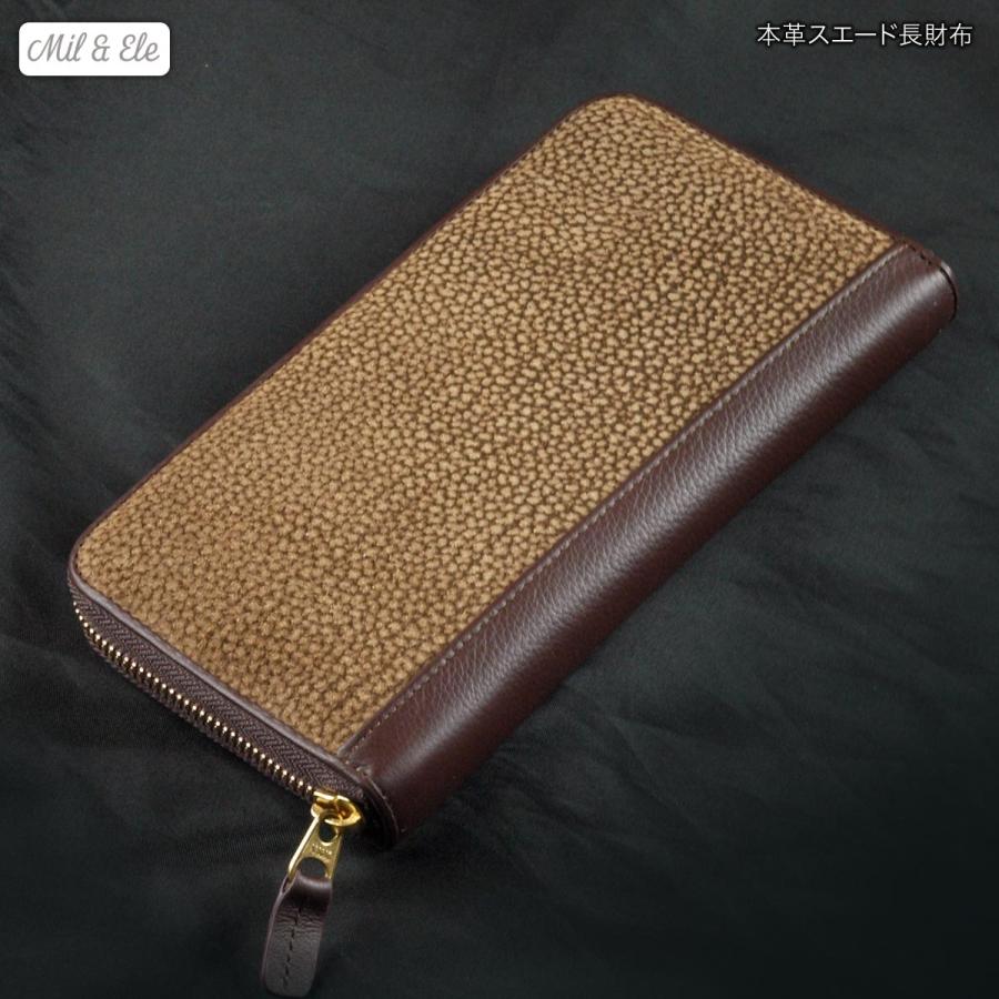 長財布 40代 ラウンドファスナー スエード レディース 本革 ブラウン レディース メンズ 財布 ジャバラ 財布